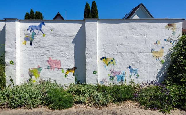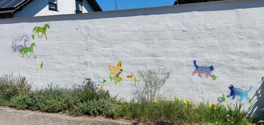 Die Wand vor der Tierarztpraxis Dr. Schmaußer und Dr. Aichinger in Pulling ist fertig (Juni 2025).